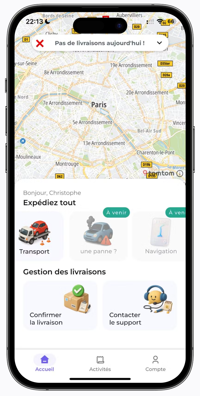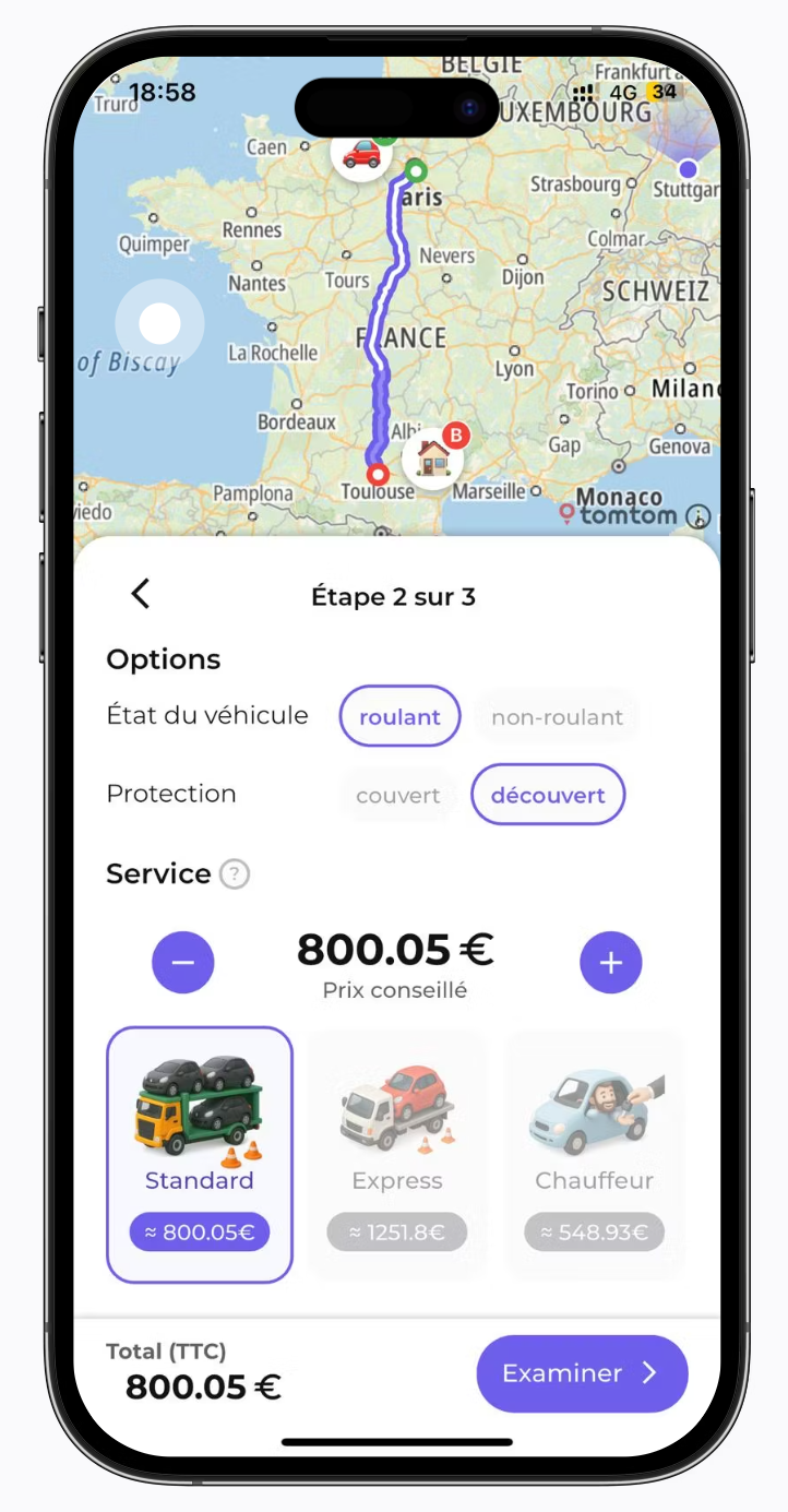 Fini les multiples applications. Trouvez en un clic un transport de voiture, un dépanneur, un garage, une place de parking ou une station de lavage — tout est centralisé dans une seule app.